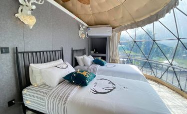 โดม ลา เดียร์ (Dome La Deer) ที่พักเต็นท์โดมหรูติดแอร์ สไตล์แคมป์ปิ้ง ตั้งอยู่บนเนินเขา บรรยากาศดีท่ามกลางธรรมชาติ วิวสวยงามมาก ห้องพักกว้างขวาง มีสิ่งอำนวยความสะดวกครบครัน WiFi ทีวี แอร์ มินิบาร์ มีสระว่ายน้ำ 2 สระ ห้องอาหาร ดนตรีสด และกิจกรรมสนุกๆมากมาย และยังมีมุมให้ถ่ายรูปมากมาย ถ้าใครได้มาพักที่นี่ จะได้สัมผัสบรรยากาศและธรรมชาติมีแปลกใหม่จากเดิมแน่นอน
