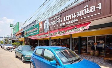 ร้านฮอยอัน แหนมเนืองเป็นร้านอาหารที่ตั้งอยู่ ตรงสี่แยกไฟแดงชลประทาน เป็นร้านอาหารที่มีรสชาติดี ราคาไม่แพงสบายกระเป๋า เป็นอาหารที่วางไว้บนจานขนาดใหญ่ ซึ่งใครมาทานร้านนี้ต้องแนะนำ ขนมเบื้องญวน, ข้าวเปียก (ก๋วยจั๊บญวน) ทางร้านได้มีการทำเส้น ก๋วยจั๊บเอง จะมีลักษณะเป็นเส้นกลม ๆ แตกต่างจากร้านอื่น พร้อมด้วยหมูกรอบชิ้นหนาทานคู่กัน ต้องลองซักครั้ง พร้อมเสิร์ฟด้วย น้ำส้มคั้น สดใหม่ เปรี้ยวหวานกำลังดี รับลองเลยต้องติดใจ