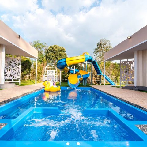 มี 8 ห้องนอน 8 ห้องน้ำ สระว่ายน้ำส่วนตัว พร้อมสไลเดอร์ขนาดใหญ่ รองรับ