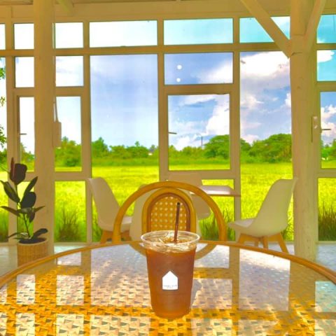 ด้วยแสงธรรมชาติจากด้านนอก และ ยังมองเห็นวิวทุ่งนาที่โอบล้อมอยู่ข้างร้านอีกด้วย