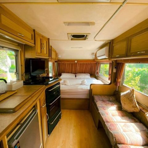 ” Caravans Khaoyai ” โซนเขาใหญ่ รีสอร์ท รถบ้าน ที่พัก จุดจอด RV ท่ามกลางธรรมชาติ ต้นไม้ ภูเขา บรรยากาศร่มรื่น เงียบสงบ มีความเป็นส่วตตัว เหมาะแก่การพักผ่อน สไตล์แคมป์ปิ้ง มุมถ่ายรูปแนวๆ ชิคๆ ติดธรรมชาติ ภายในรีสอร์ทมีสระว่ายน้ำส่วนกลาง ให้ลูกค้แช่น้ำเพลิน พร้อมวิวภูเขา สุดคูลล์ รูปแบบที่พัก มี รถบ้านแบบธรรมดา สำหรับ 2 ท่าน/4 ท่าน, รถบ้านที่มีจากุซชี่ส่วนตัว สำหรับ 3 ท่าน/4 ท่าน และ ยังมีห้องพัก สำหรับ 2 ท่าน/4 ท่าน อีกด้วย ราคารวมอาหารเช้า คุ้มสุดๆ ทั้งบรรยากาศภายในรีสอร์ท สิ่งอำนวยความสะดวกที่ครบครัน