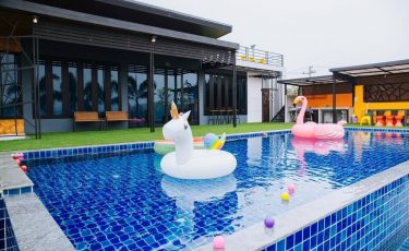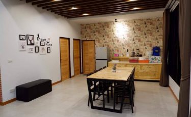 1 ห้องครัว 1 ห้องอาหาร รองรับผู้เข้าได้ 10-20ท่าน ทางบ้านพักมีบริการโต๊ะสนุ๊กเกอร์ คาราโอเกะ เพิ่มความเพลิดเพลินยามพักผ่อน วิวสวยมาก บริเวณสระน้ำมีที่นั่งชิลล์ๆ อุปกรณ์ครัว เตาปิ้งย่าง พร้อมสิ่งอำนวยความสะดวกมากมาย