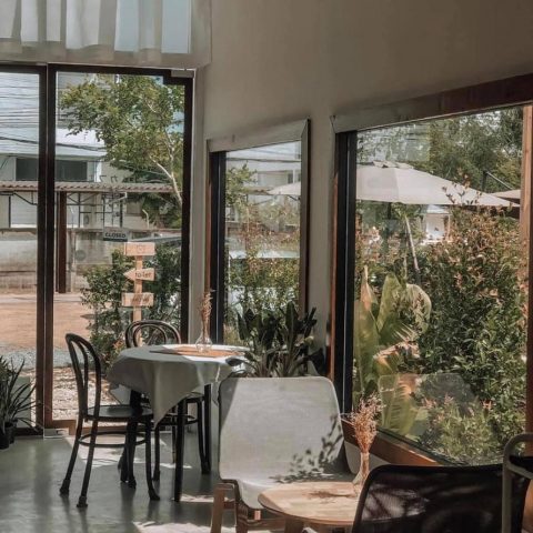 ร้านโทนไม้ สีขาว ดูโล่งโปร่ง สบายตามาก ทางร้านมีเครื่องดิ่ม เค้ก และ เมนูอาหาร