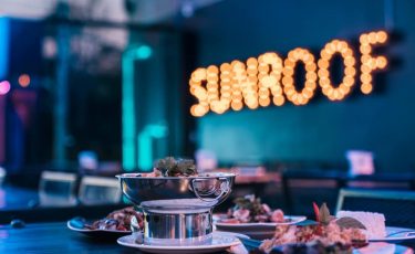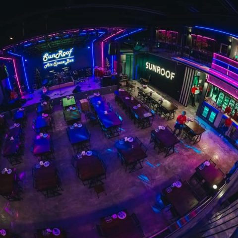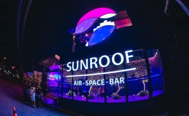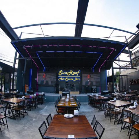 Sunroof air space bar เป็นร้านอาหารเปิดใหม่ที่ให้บรรยากาศแสงสีที่ชวนหลงไหล มีดนตรีสดตลอดคืน ภายในร้านมี 2 ชั้นให้ลูกค้าได้เลือกนั้ง มีบริการห้องคาราโอเกะแบบส่วนตัว สำหรับอาหารของร้านนี้ถือว่าเป็นเรื่องจริงจังอย่างมาก คัดสรรในเรื่องของวัตถุดิบ และมีการปรุงรสโดยเชฟที่มีฝีมือ เมนูเด็ดของทางร้านที่มาแล้วต้องสั่งคือ ปลากะพงทอดน้ำปลากับยำแอปเปิลเขียว, ตำหลวงพระบาง, ข้าวผัดซันรูฟ, ซุปเปอร์ปีกไก่, หมูมะนาว, กุ้งคั่วพริกเกลือ ซึ่งอาหารแต่ละเมนูถือว่า เข้าถึงรสชาติ และอร่อยจนวาง ช้อนไม่ลงเลยทีเดียว