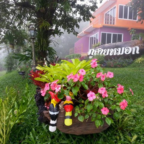 รีสอร์ท ท่ามกลางธรรมชาติ ” ภูสายหมอกเขายายเที่ยง รีสอร์ท ” บรรยากาศร่มรื่น อากาศดี เย็นสบาย ธรรมชาติสวย ๆ ต้นไม้นานาชนิด ดอกไม้สวยๆมากมาย เป็นธรรมชาติ สบายตา สบายใจ ปลอดโปร่ง ไม่แออัด เหมาะแก่การพักผ่อน ภายในรีสอร์ท มีมุมนั่งเล่น เดินเล่น ถ่ายรูปมากมาย รีสอร์ทบนเนินเขายายเที่ยง ที่มีสีสันแสนน่ารักสะดุดตา ปลูกสร้างให้กลมกลืนไปกับธรรมชาติ มีหลากหลายแบบ สิ่งอำนวยความสะดวกครับ