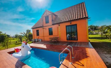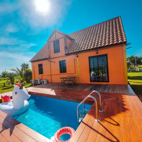 ” Lapin Hill Pool Villa Khaoyai – ลาแปง ฮิลล์ พูลวิลล่า บ้านพักเขาใหญ่ ” บ้านพักพูลวิลล่า Private zone บนพื้นที่กว่า 1 ไร่ ในวิลล่าสไตล์ทัสคานี โอบล้อมด้วยทิวเขา วิวพาโนรามา 180 องศาจากสระว่ายน้ำส่วนตัว ให้คุณได้พักผ่อนในบรรยากาศธรรมชาติ สงบ และส่วนตัว สระว่ายน้ำส่วนตัววิวเขา ลมเย็นสบายตลอดปี ไม่ว่าจะนั่งชิลจิบเครื่องดื่มเย็นๆอ่านหนังสือริมสระ วิลล่าสถาปัตยกรรมสไตล์ทัสคานี ตกแต่งภายในสไตล์วินเทจ ฟาร์มเฮ้าส์ วิลล่ารองรับได้ 8 ท่าน เสริมสูงสุด 1 ท่าน มี2 ห้องนอน 2 ห้องน้ำพร้อมเครื่องทำน้ำอุ่น แอร์ทั้งหลัง สิ่งอำนวยความสะดวกครบครัน เหมาะกับการพักผ่อนอันแสนสงบในวันหยุด