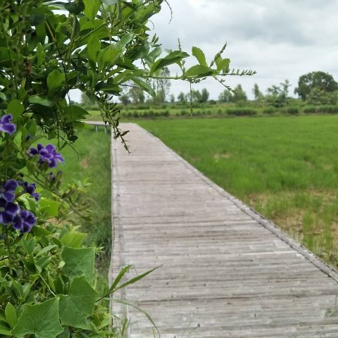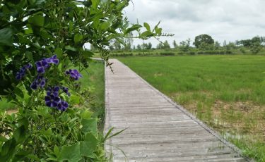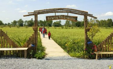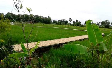 สะพานไม้ร้อยรักรวมใจ ศูนย์การเรียนรู้เศรษฐกิจพอเพียงบ้านเตย ที่ตั้ง 27 หมู่ 1, ตำบล กระเบื้องใหญ่ อำเภอ พิมาย นครราชสีมา เรียกกันสั้นๆ ว่าสะพานรักบ้านเตย เป็นสะพานไม้ที่ยาวและออกแบบเป็นแนวเส้นโค้งที่สวยมาก เมื่อมองจากมุมสูง ระหว่างทางเดินบนสะพานจะผ่านวิวท้องทุ่งเขียวขจีและเปลี่ยนสีไปตามฤดูกาล สะพานไม้แห่งนี้ตั้งอยู่ใน ศูนย์การเรียนรู้เศรษฐกิจพอเพียงบ้านเตย อำเภอพิมาย นครราชสีมา กลายเป็นที่เที่ยวที่ได้รับความนิยมอย่างรวดเร็ว ใครสนใจแวะมาเที่ยวก็มาช่วงที่เป็นทุ่งนาสีเขียว หรือสีเหลืองทองจะสวยมากจ้า