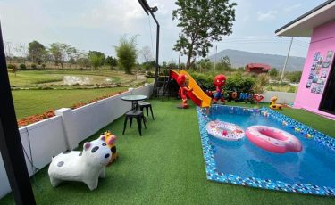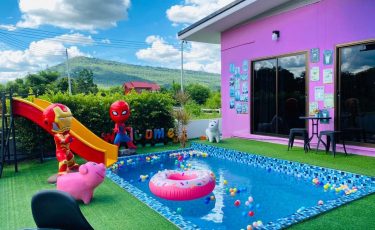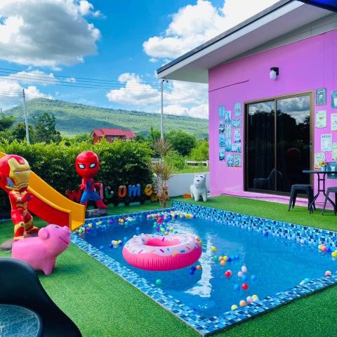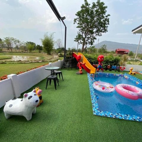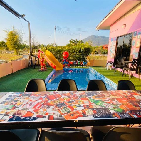 ” Khao Yai Sky Pool Villa ” บ้านพักพูลวิลล่าส่วนตัว มีสไลเดอร์ ท่ามกลางธรรมชาติ โอบล้อมด้วยภูเขา บรรยากาศดี มีความเป็นส่วตัว บ้านพักรองรับได้ 8-10 ท่าน บ้านพักขนาด 3 ห้องนอน (ห้องที่ 1 ห้องใหญ่ในตู้คอนเทนเนอร์ ห้องที่ 2 ห้องใหญ่ในบ้าน และ ห้องที่ 3 ห้องเล็กในบ้าน) มีระเบียงชมวิวทิวทัศน์ ชมบรรยากาศ สิ่งอำนวยความสะดวกมากมาย สระว่ายน้ำส่วนตัว มีสไลเดอร์ ห่วงยางแฟนซี