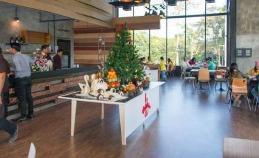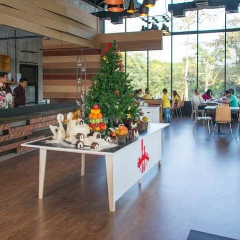 The Chocolate Factory ตั้งอยู่ริมถนนธนะรัชต์ เป็นร้านอาหารและคาเฟ่แบบ 2 in 1 ตัวร้านเป็นโครงเหล็กและกระจกสูง ออกแบบได้เหมือนกับเป็นโรงงานจริงๆ ตัวร้านแบ่งออกเป็น 2 โซน คือ โซนชั้นล่าง ชั้นนี้เป็นร้านคาเฟ่มีช็อกโกแลตให้เลือกหลากหลายแบบ มีโต๊ะให้นั่งจิบเครื่องดื่มเย็นๆ ส่วนชั้น 2 เป็นโซนร้านอาหาร มีเมนูให้เลือกหลากหลาย นอกจากนี้ด้านในร้านยังมีโซนกระจกใสเปิดให้เห็นการทำช็อคโกแลตแบบโฮมเมดอีกด้วย