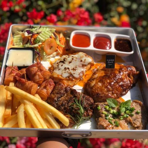 Camp Out Cafe เป็นคาเฟ๋สุดเก๋สไตล์แคมป์ปิ้งที่มีบรรยากาศสบายๆด้านในจะเป็นโซนห้องแอร์เย็นฉ่ำ ส่วนด้านนอกจะเป็นโซนOpen Air ให้อารมณ์เหมือนการออกไปตั้งแคมป์กับกลุ่มเพื่อน ที่นี่มีทั้งเครื่องดื่มรสชาติกลมกล่อม เบเกอรี่หลากหลายชนิด นอกจากนี้ยังมีอาหารคาวไว้คอยให้บริการอีกด้วย