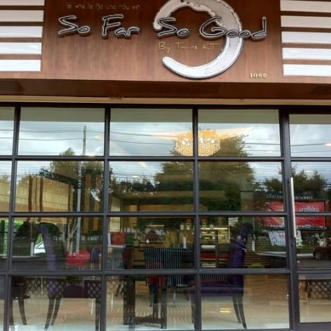 ร้านโซฟาโซกู๊ด (So Far So Good) ตั้งอยู่ฝั่งตรงข้ามกับสวนภูมิรักษ์ ตกแต่งในบรรยากาศสไตล์โมเดิร์น มีพื้นที่กว้างขวาง ภายในร้านมีตุ๊กตาหมีตัวใหญ่ตั้งอยู่บนโซฟา ไม่ว่าใครที่มาทานกาแฟที่ร้าน ก็มักจะชื่นชอบโซนนี้กันตลอด นอกจากมุมยอดฮิตนี้แล้วก็ยังมีโซนนั่งจิบกาแฟสบายๆ ให้เลือกนั่งอีกหลากหลาย ที่นี่นอกจากจะมีเค้ก กาแฟ สมูทตี้ อิตาเลียนโซดาแล้ว ยังมีอาหารจานเดียวไว้คอยบริการด้วย เมนูแนะยำที่ต้องลองคือ Ice Chou (ไอซ์ชู) เป็นขนมที่ไซส์ใหญ่กว่าเอแคลร์ด้านในเป็นไอศกรีม ฮันนี่โทสต์อร่อยๆ รวมถึงบราวนี่กระทะร้อน ที่เหมาะกับคนชอบทานขนมแบบอบร้อนอีกด้วย