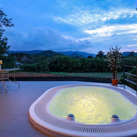 พร้อมอ่างจากุชชี่ระบบน้ำอุ่น ให้ๆได้นอนแช่ฟินๆจ้า เหมาะสำหรับมาพักผ่อน