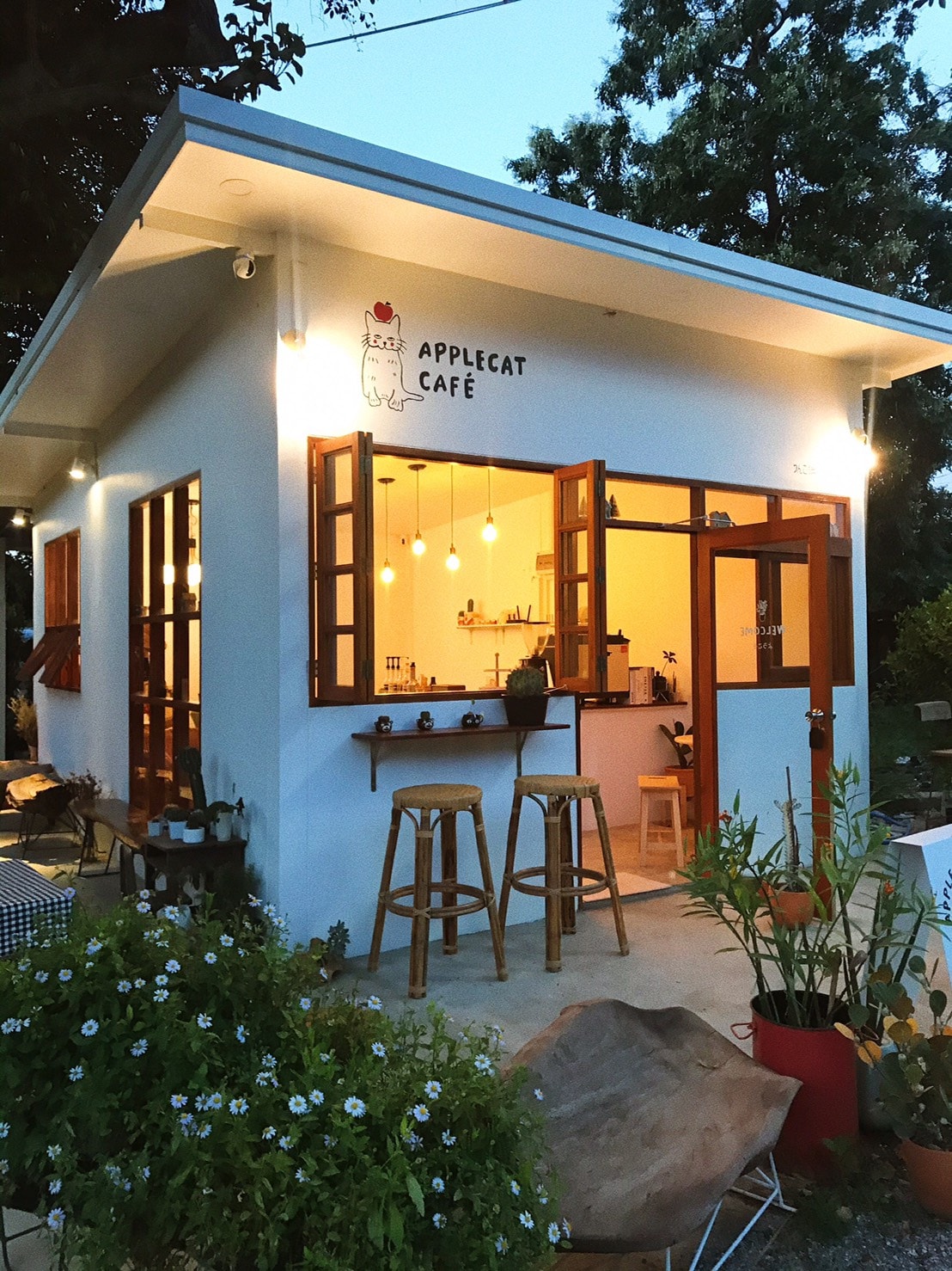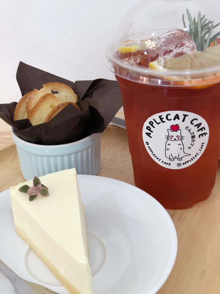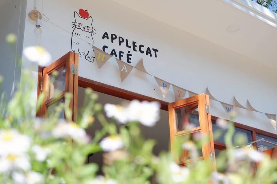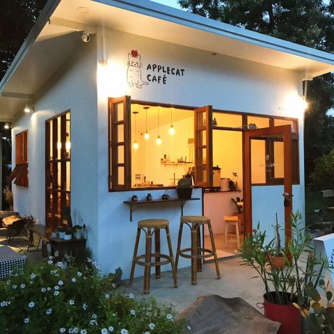 AppleCat Cafe’ ร้านกาแฟเล็กในชุมชน ตกแต่งสไตล์ญี่ปุ่นสุดน่ารัก โทนไม้ สีขาว น้ำตาล ดูอบอุ่น ทางร้านมีเมนูให้เลือกทั้งคาวและหวาน และยังมีมุมถ่ายรูปเก๋ๆ หลายมุมอีกด้วย