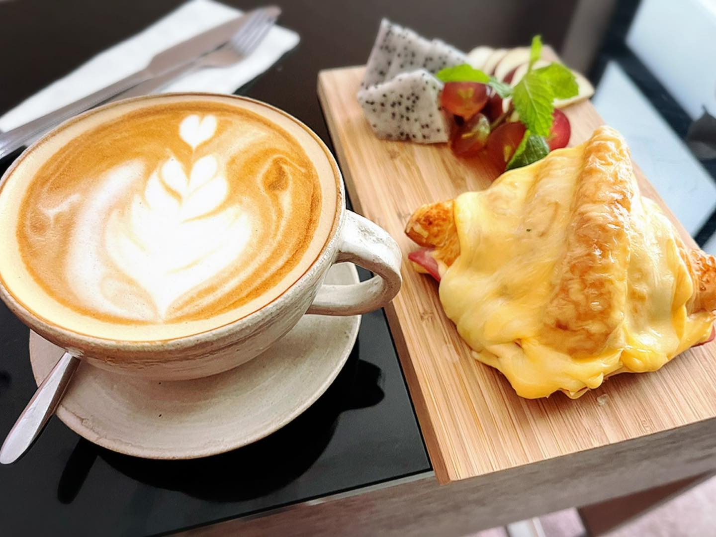 มีบริการทั้งอาหาร เครื่องดื่ม และ เบเกอรี่ เมนูเด็ด คือ “ครัวซองต์”